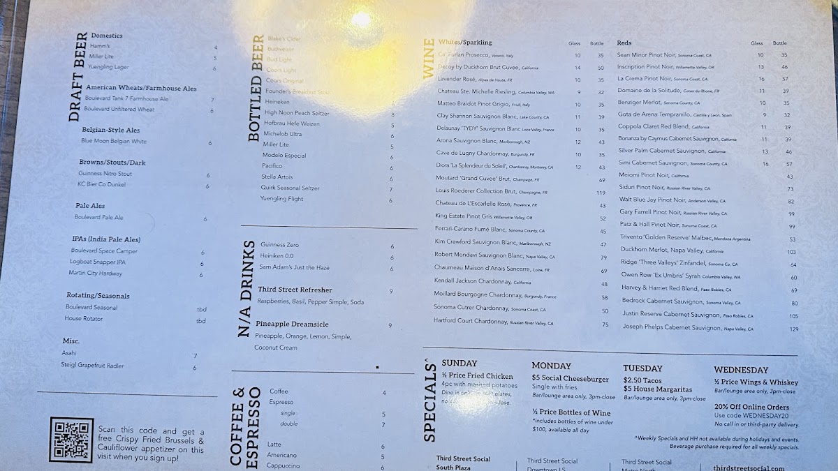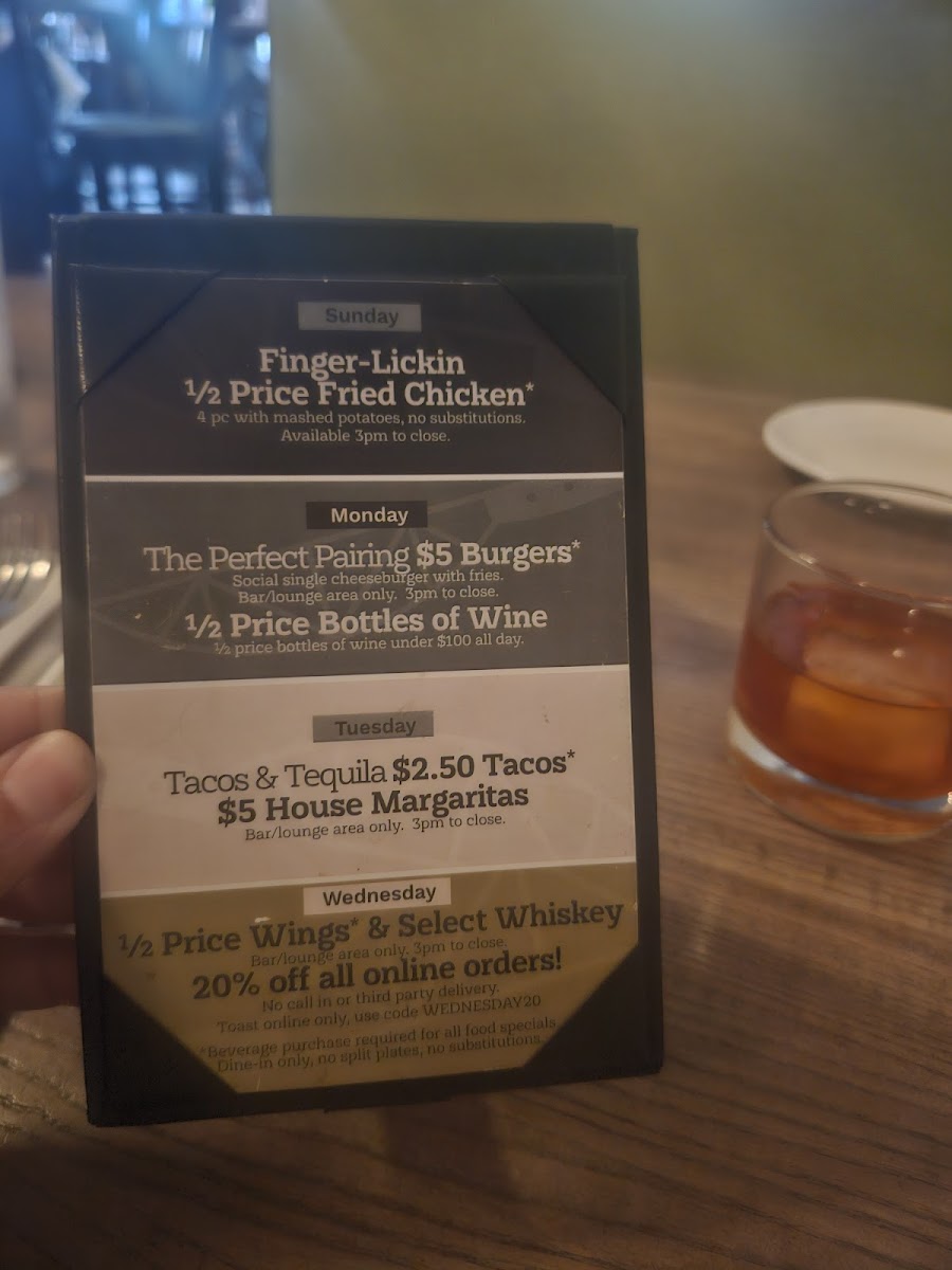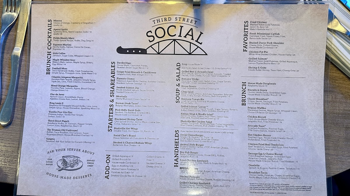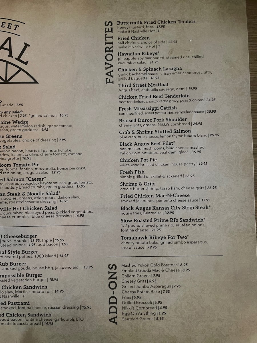 The menu supports a range of dining occasions from traditional breakfast items and casual lunch choices to more substantial dinner entrees, allowing visitors to order light bites or full meals. Many items incorporate regional flavors and ingredients, providing a diverse American restaurant experience.